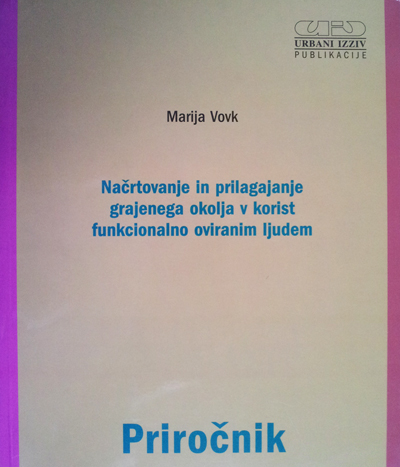 Priročnik na večino vprašanj graditve prostorov brez arhitekturnih in grajenih ovir daje praktične odgovore. Vsebuje predloge za odpravljanje ovir v stanovanjskih in nestanovanjskih prostorih ter na javnih prostorih, tudi z vidika prometa. Na koncu je dodana priloga o osnovnih antropometričnih podatkih za funkcionalno ovirane ljudi, različnih starosti in obeh spolov.